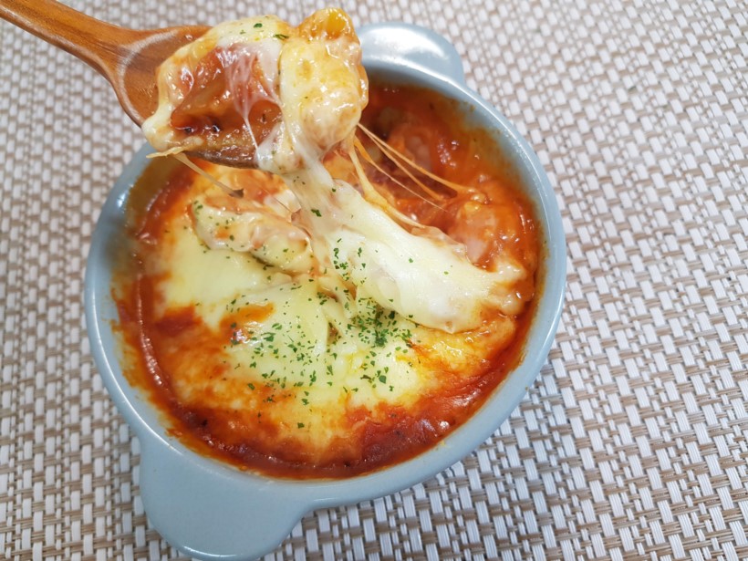 전자렌지에 2분 30초, 3분 정도 데워주면서 모차렐라 치즈가 녹는 정도를 확인해주면 돼요.