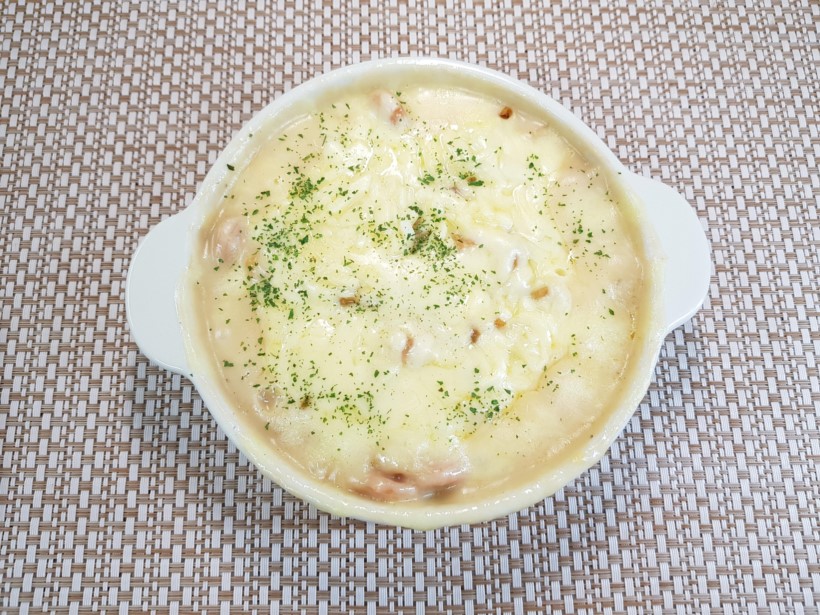 재료 : 한입크기 고구마 9개, 옥수수콘 150g, 양파 1/2개, 비엔나소시지 10개 이상, 토마토소스, 크림소스, 모차렐라 치즈, 파슬리가루